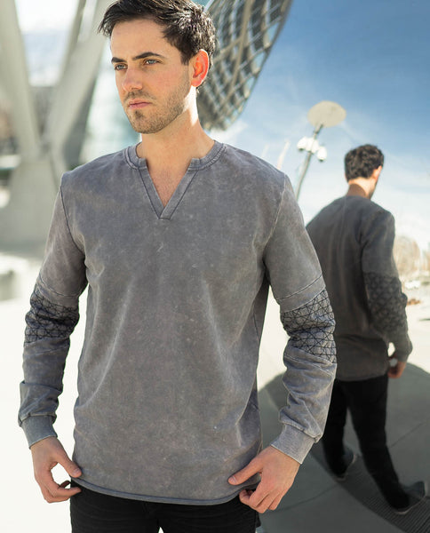 nANA jUDY La Grange Geo Embroidery Sweatshirt has an acid wash finish and geo embroidery on the long sleeves. Details Geo Embroidery Long Sleeves Acid Grey finish with black embroidery detail on... Read More Read More