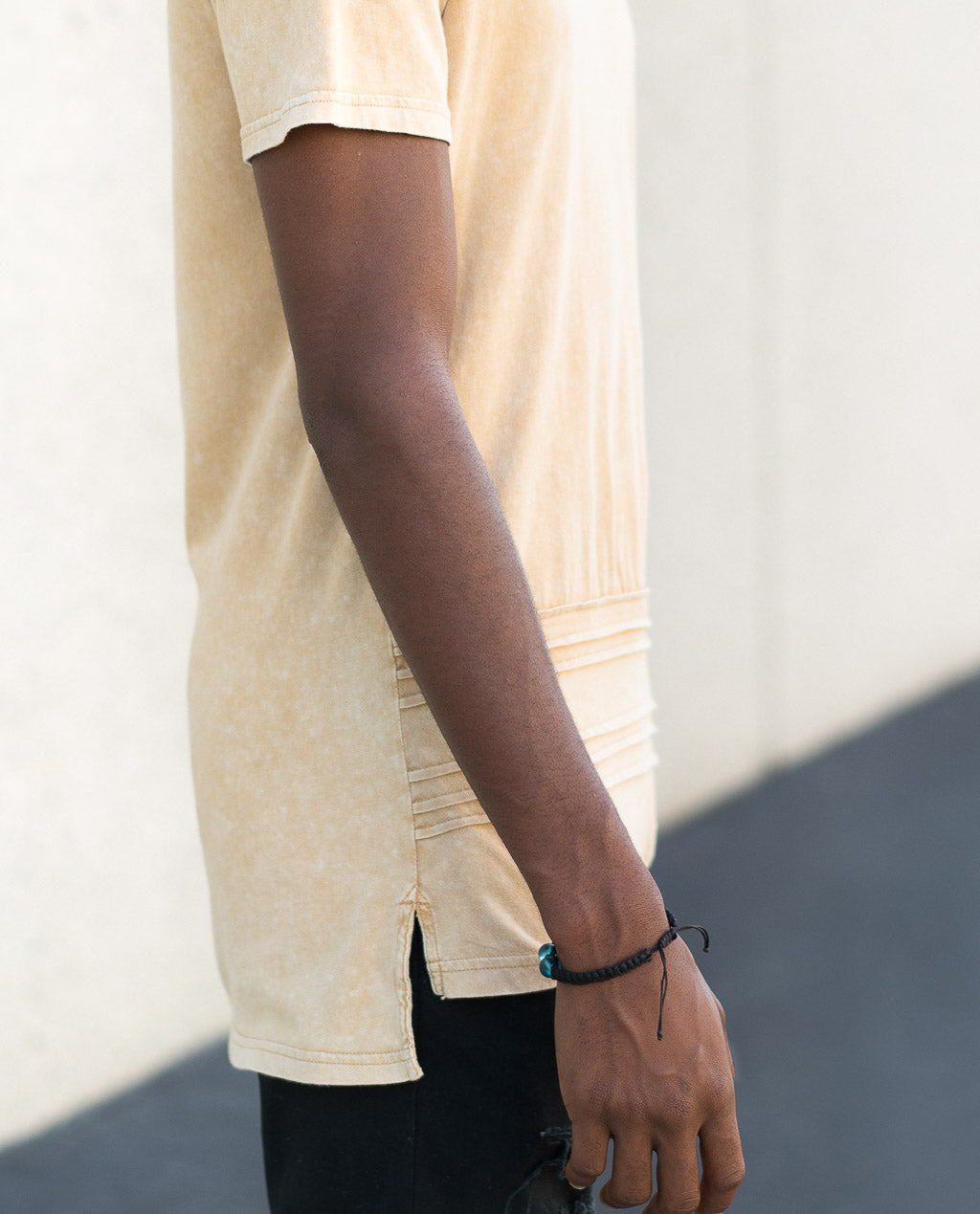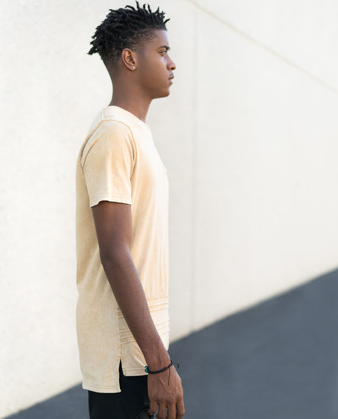 nANA jUDY Sweet Emotion Acid Sand Tee has a stepped hem with panel tucks and a jetted pocket.