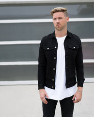 Classic denim jacket in black. The more you wear it, the better it looks.
