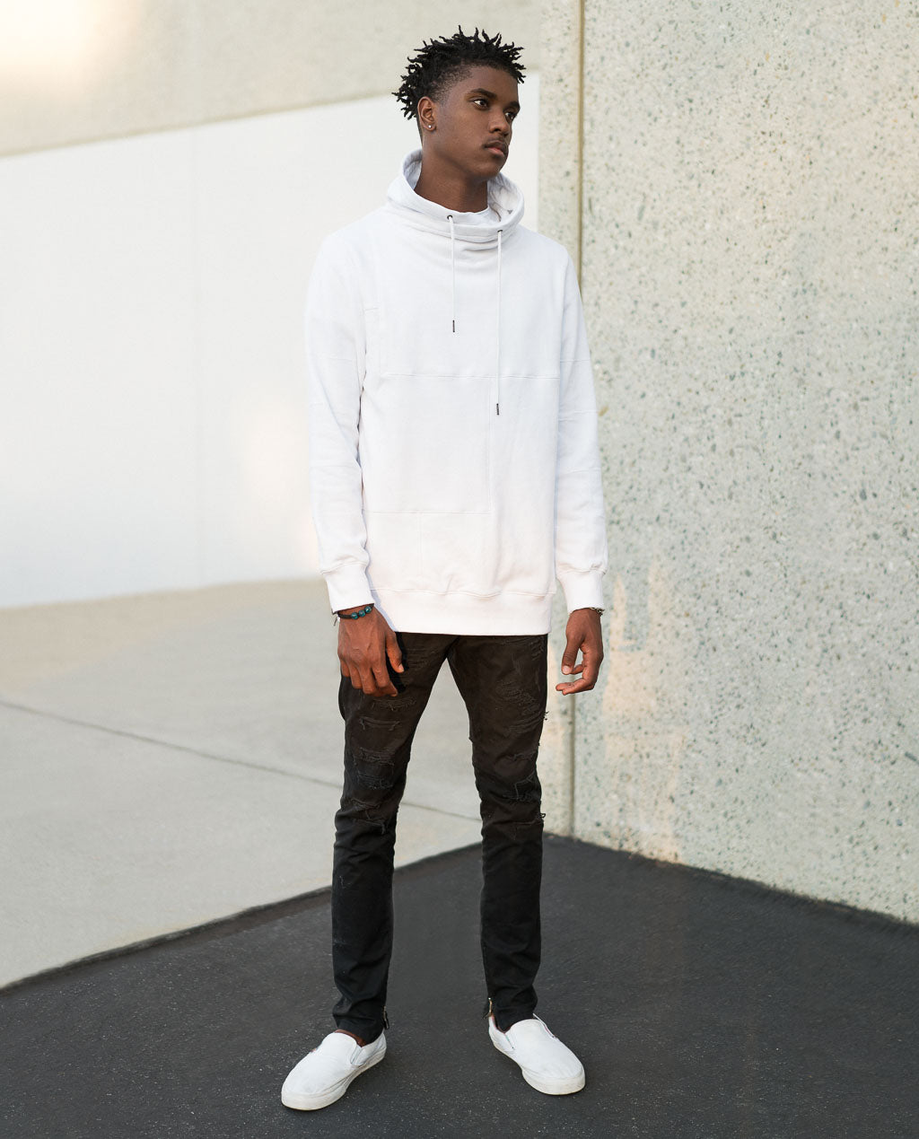 Easy and relaxed, the Nana Judy Pisa Patchwork Hoodie has a high, drawstring collar, with subtle patchwork and beautiful stitching detail. Great for a MINIMAL look which pairs perfectly with black pants and denim. This piece is a modern stylized take on the traditional hoodie. We love this piece and know you will too.