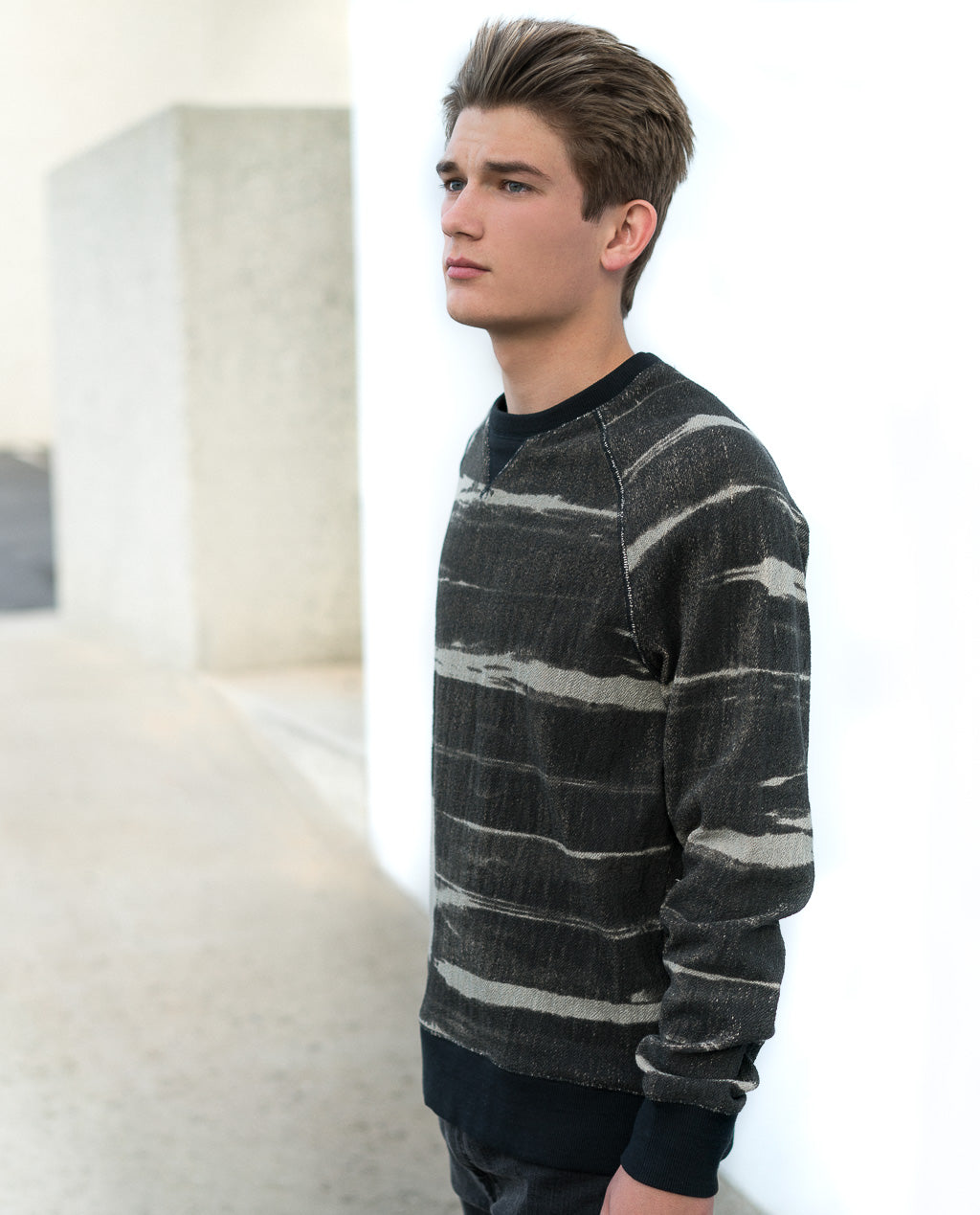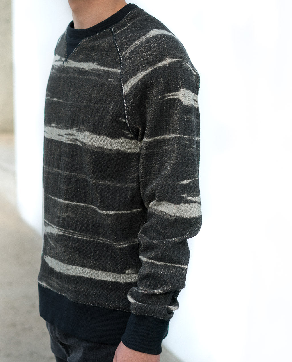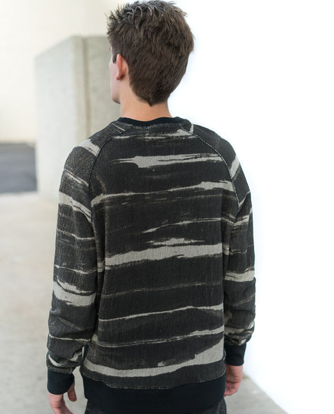 The Oxford Lads Variegated Stripe Sweatshirt is a premium Heavyweight french terry crew neck pullover with an acid wash finish. Amazing piece that can be worn in a variety of ways.