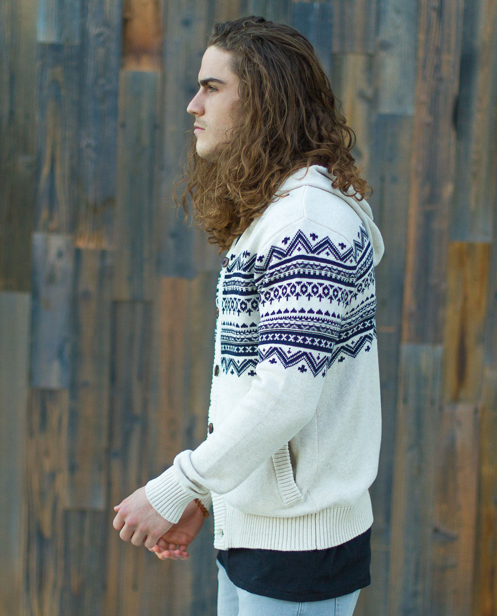 Rose Pistol Baja Hooded Cardigan is a statement-making sweater featuring a baja knit design. Ultra-cozy cardigan offers hood, front button closure, and rib-knit trim at the cuffs hem for a comfortable fit. Complete with two hand warmer pockets. Get it only at AAURA.