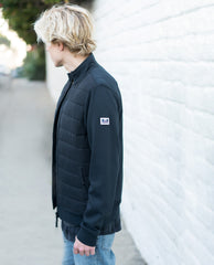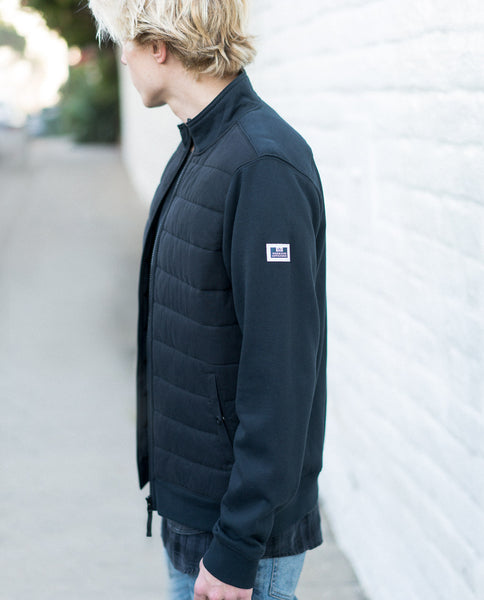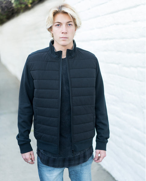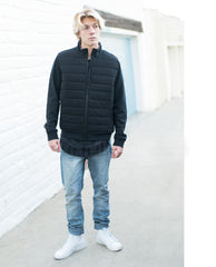 WEEKEND OFFENDER Wear Black Jacket Fit Model is 5'10" wearing a Medium Made with quilted front and a heavy knit in the back, it has room and stretch. WEEKEND OFFENDER Wear Black Jacket... Read More Read More