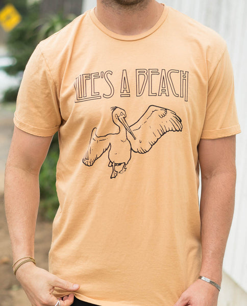 Altru Life's A Beach Tee is just a chill pelican doing its thing, coming in for a beach landing. Living a beach lifestyle.