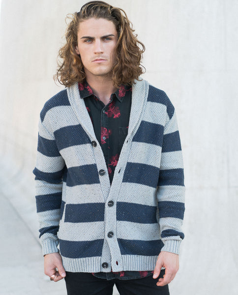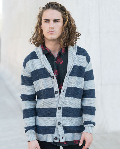 Astrneme Midnight Grey Elbow Patch Cardigan