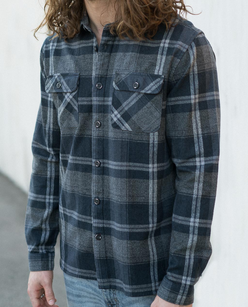- Double button-flap chest pockets