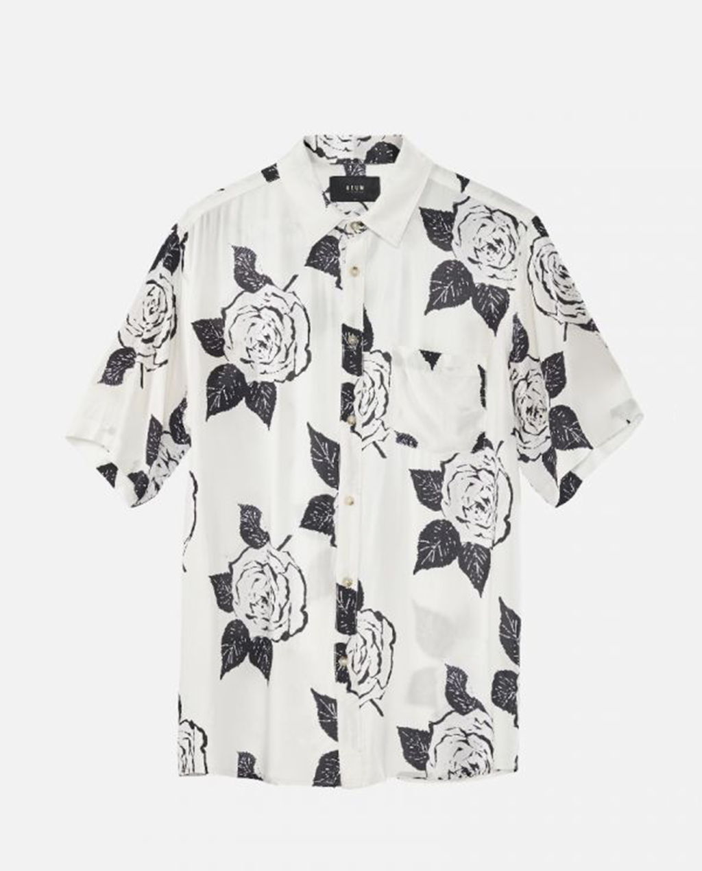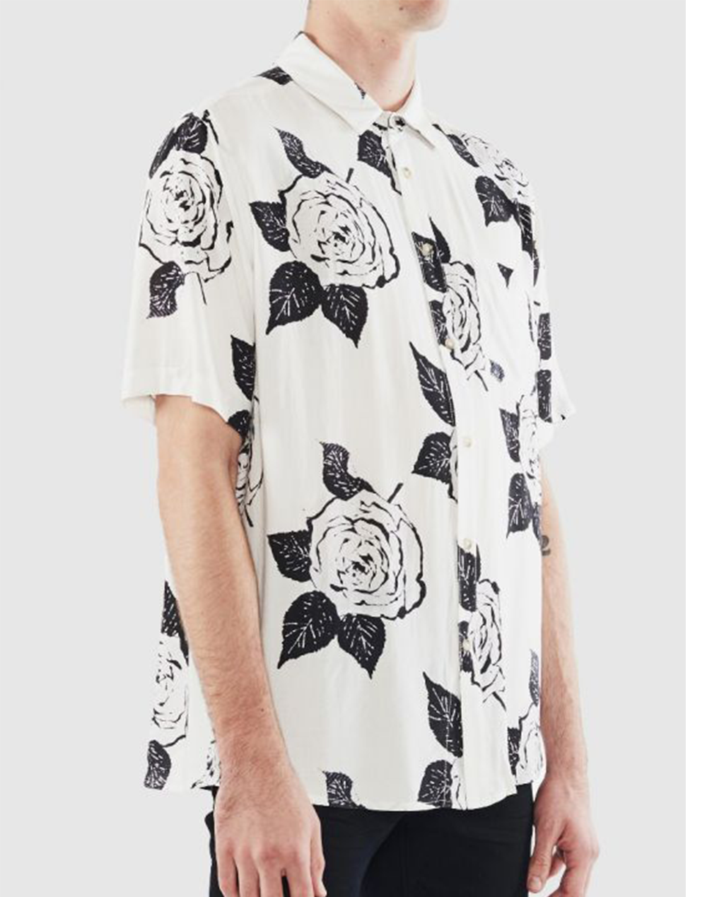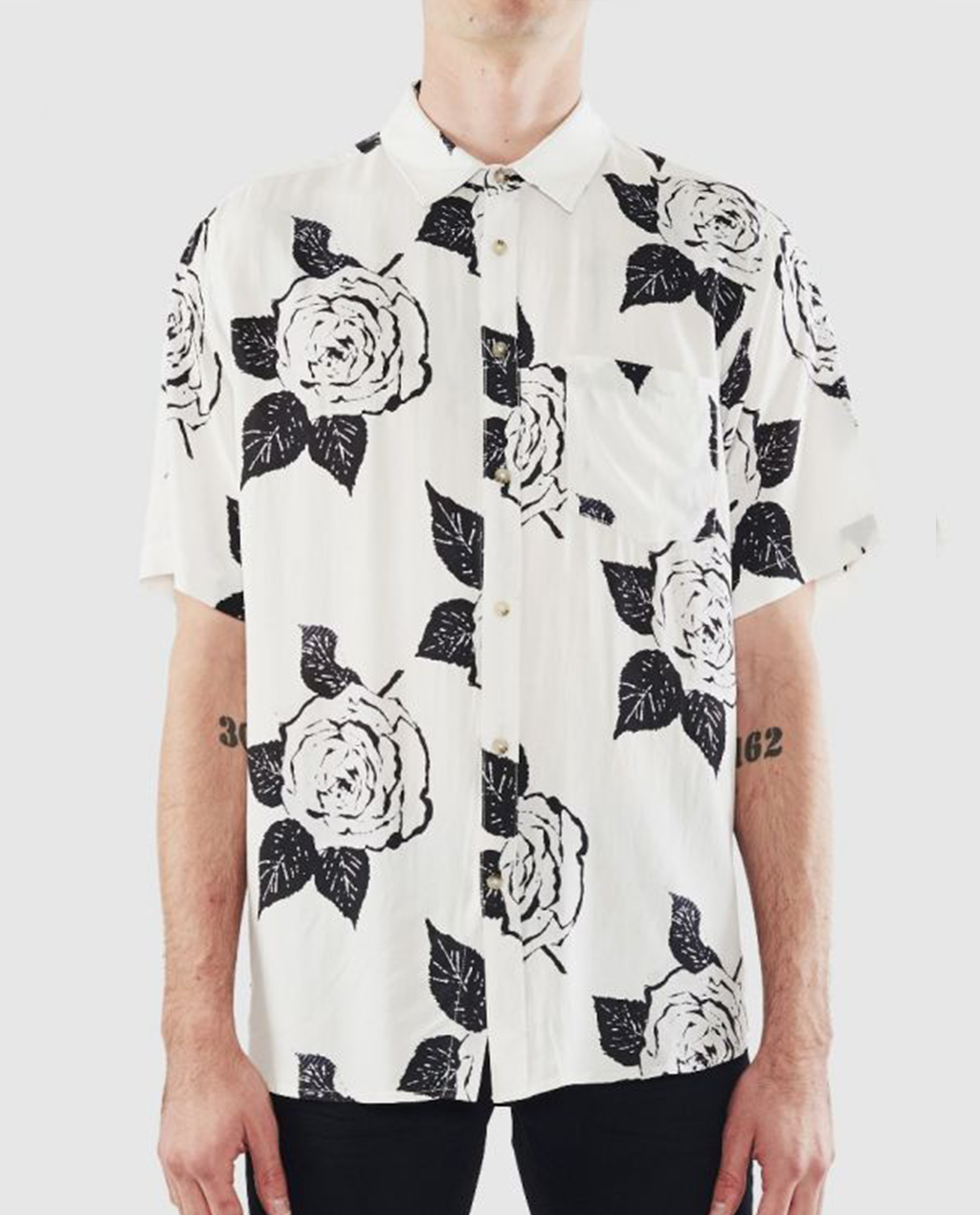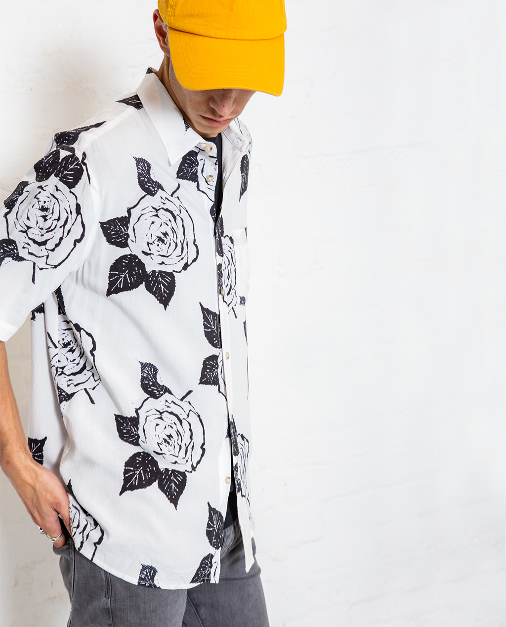 Neuw's Rose Shirt returns in a fresh new print and wash this season - including this white iteration with contrasting all-over rose print.