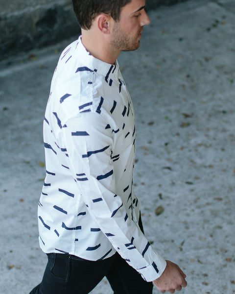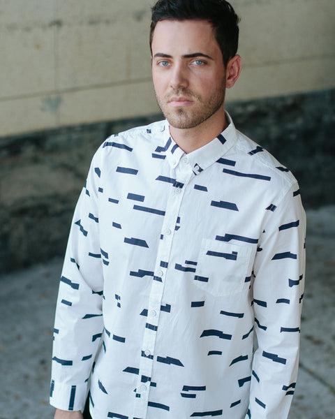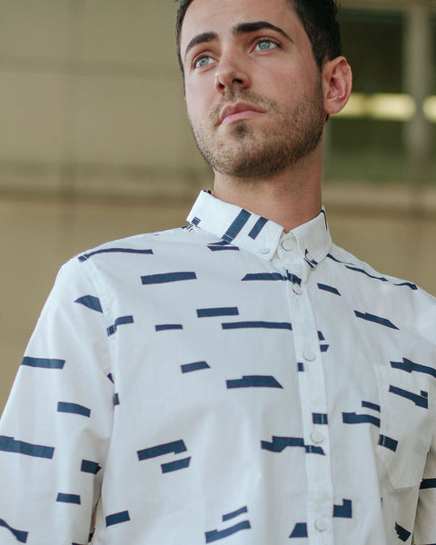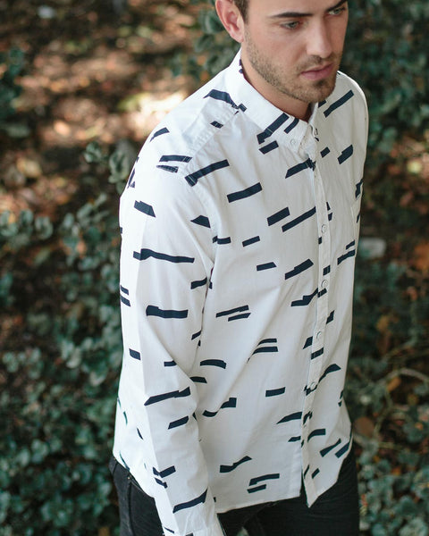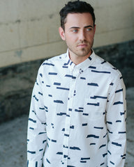 Oxford Lads Horizon Stripe Buttonup is a unique and rad, eye-catching designed shirt. Its clean design says a lot about the wearer. The broken horizontal stripe design is printed on quality washed-cotton, styled with a button-down collar and chest patch pocket.