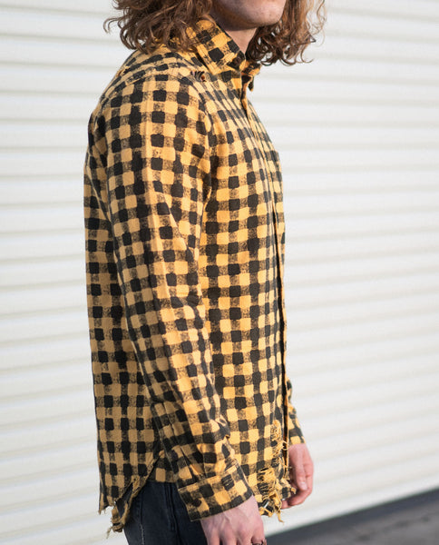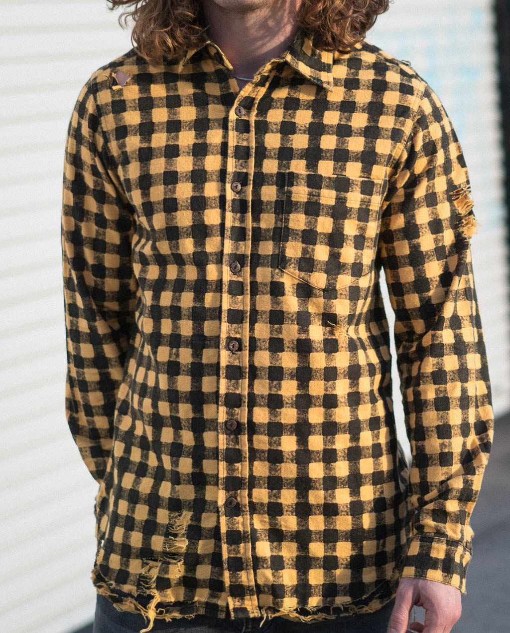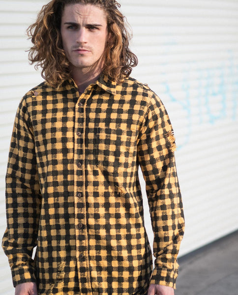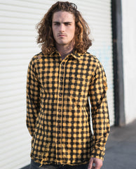 The People Vs. Distressed Flanno, is made from 100% Cotton Flannel and soft washed for a nice hand feel. It features a raw and destroyed hem, coconut buttons and is a long sleeve shirt in a check print. This style is in a yellow/black colour way, and features a chest pocket, button front, and allover trashing Pair it with some signature jeans.