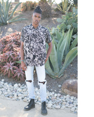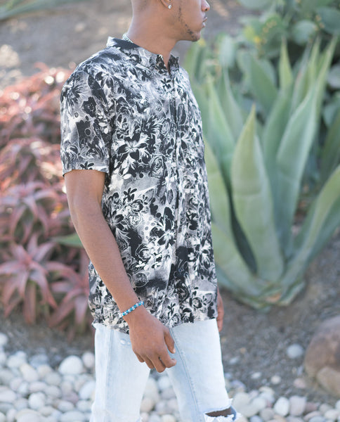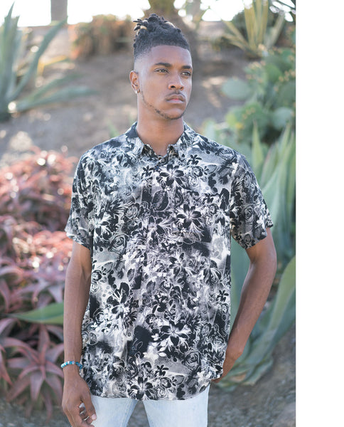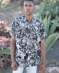 Classic easy wearing Beach Boy Shirt made from light weight cotton washed back for an authentic look. This style features tonal button detail, a chest pocket, regular collar, and allover print.