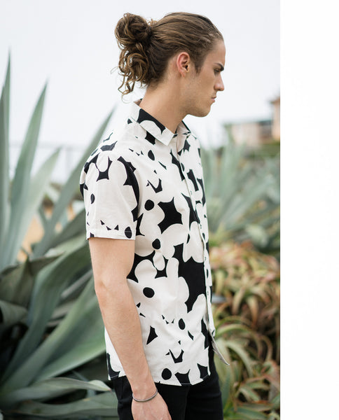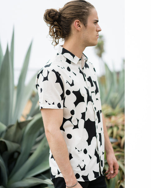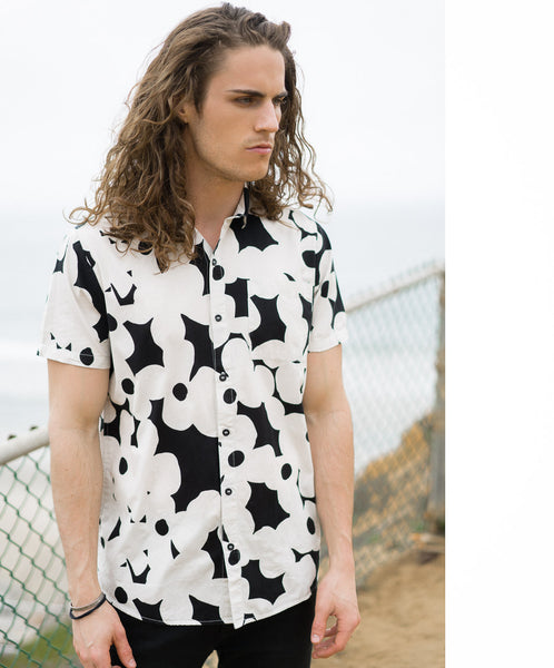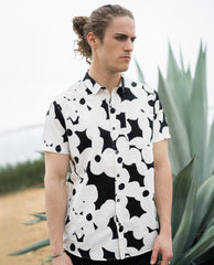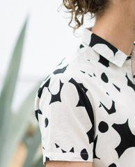 Classic easy wearing Beach Boy Shirt made from light weight cotton washed back for an authentic look. This style features tonal button detail, a chest pocket, regular collar, and allover print.