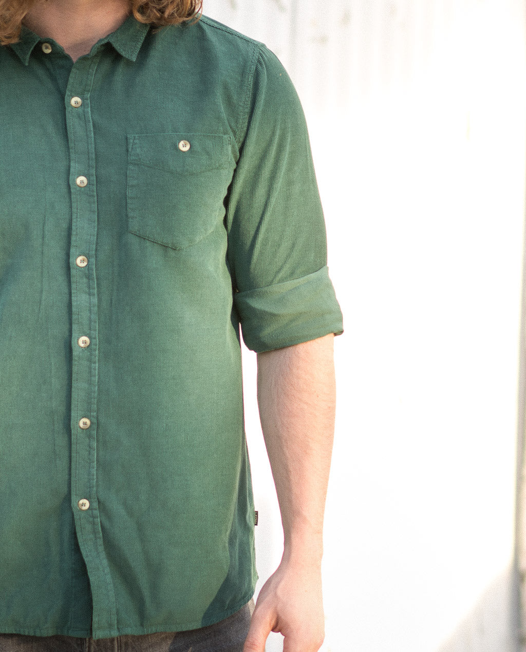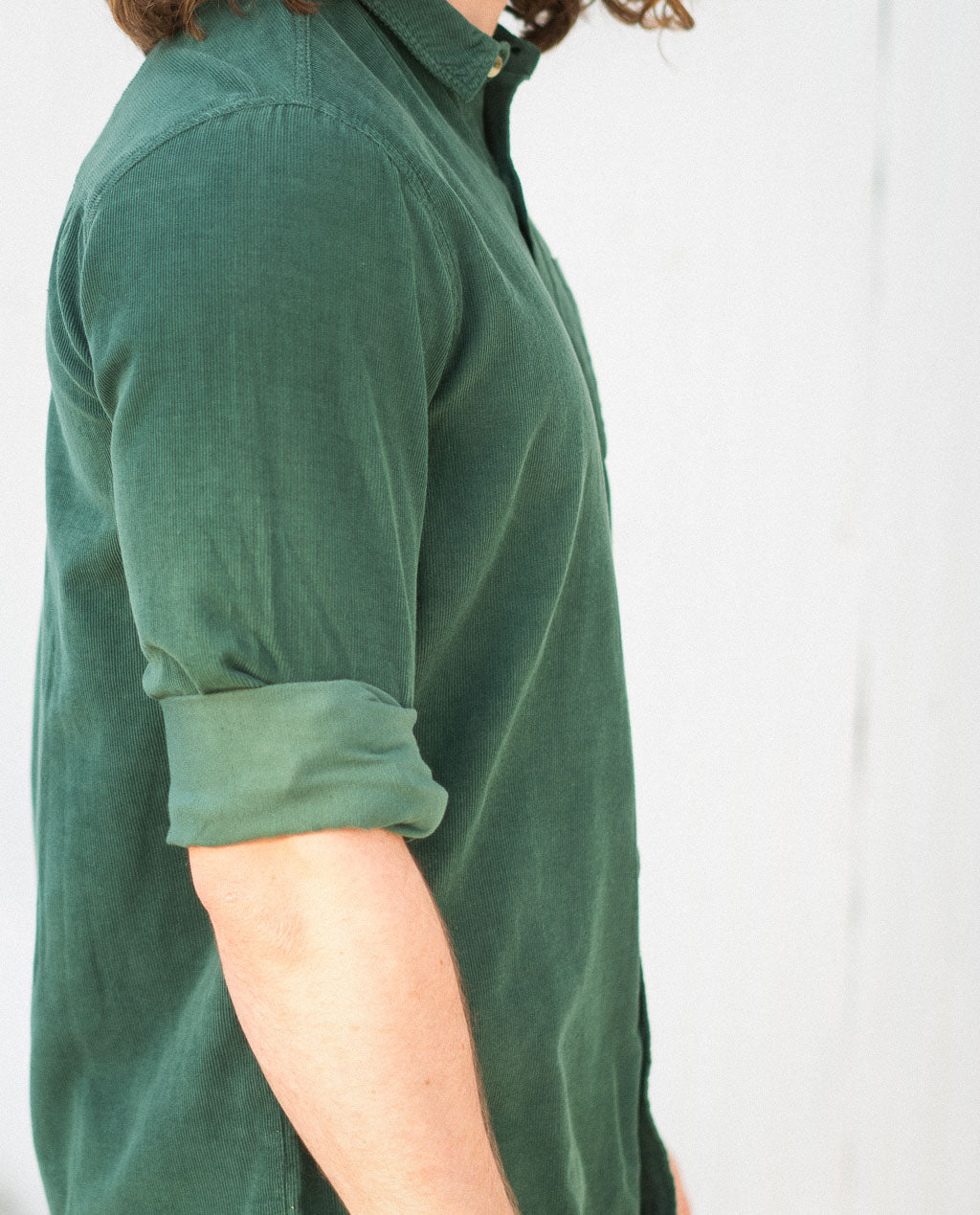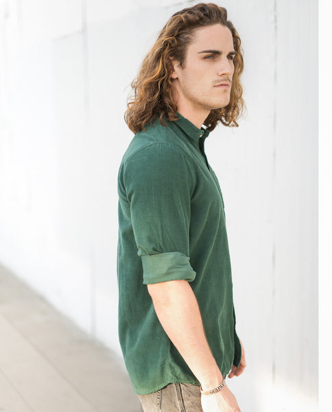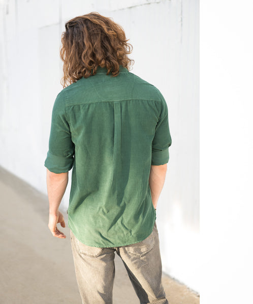Rollas Corduroy Shirt Trade Green is a classic with a modern fit. Soft ribbed corduroy in rich black, with a back-cut collar, full-length button front closure and rounded hem. One chest pocket with a button finishes it off.