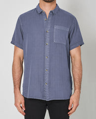 Rollas Men At Work Herringbone Weave Blue Buttonup