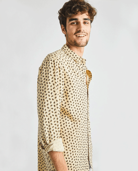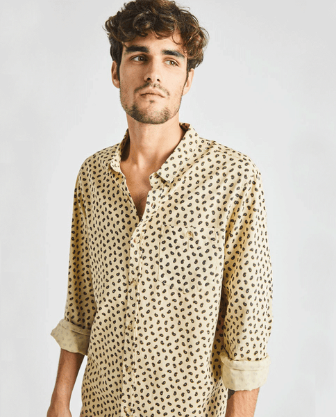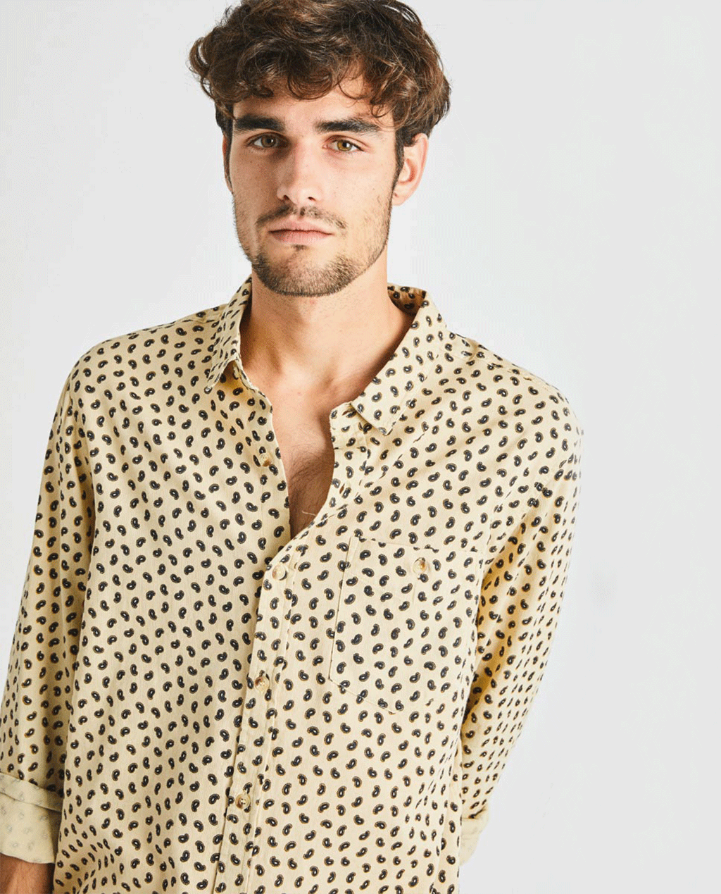 A Rollas classic and favourite --The Men At Work Shirt, due to its slouchy and relaxed nature. We’ve updated this with an exclusive print to make it stand out from the rest. Cuff the sleeves back or wear loosely over a tee for those cooler nights.