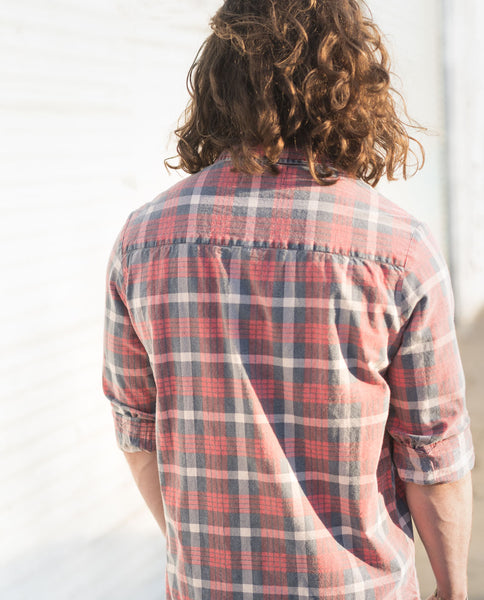 Rollas Tradie Marlboro Check Shirt is an essential summer Mens wardrobe piece....the perfect short sleeve natural linen shirt.