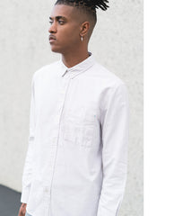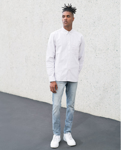 SLVDR Bedford Sand Buttonup is a long sleeve button-down woven shirt in 100% cotton diamond chambray, featuring tech/flap front pocket and other unique details. The attention to detail makes this shirt not only a unique spin on a denim buttonup, but just enough edge to a normally classic shirt.