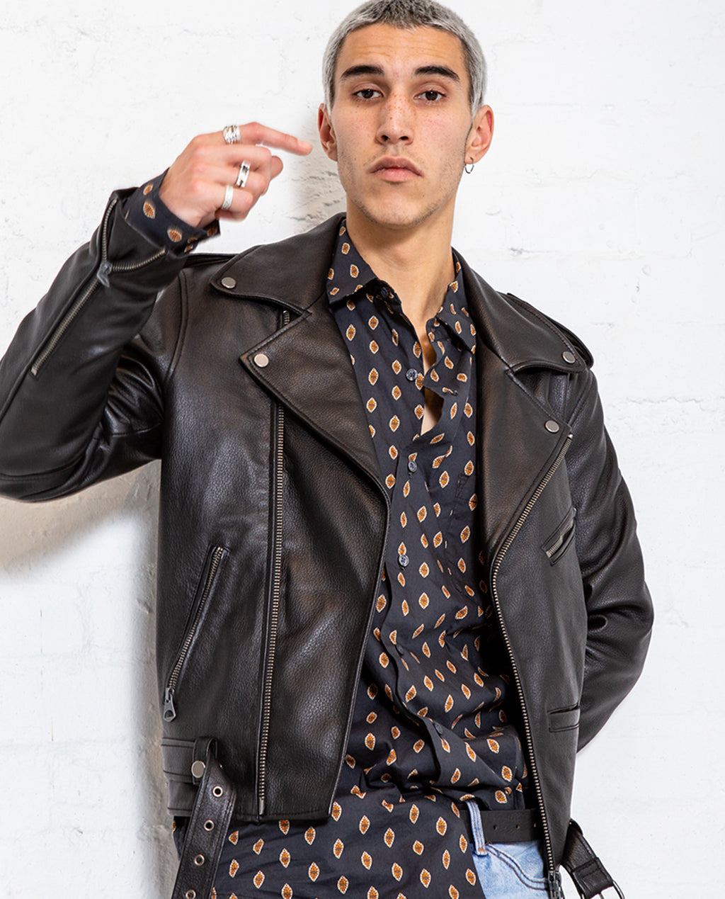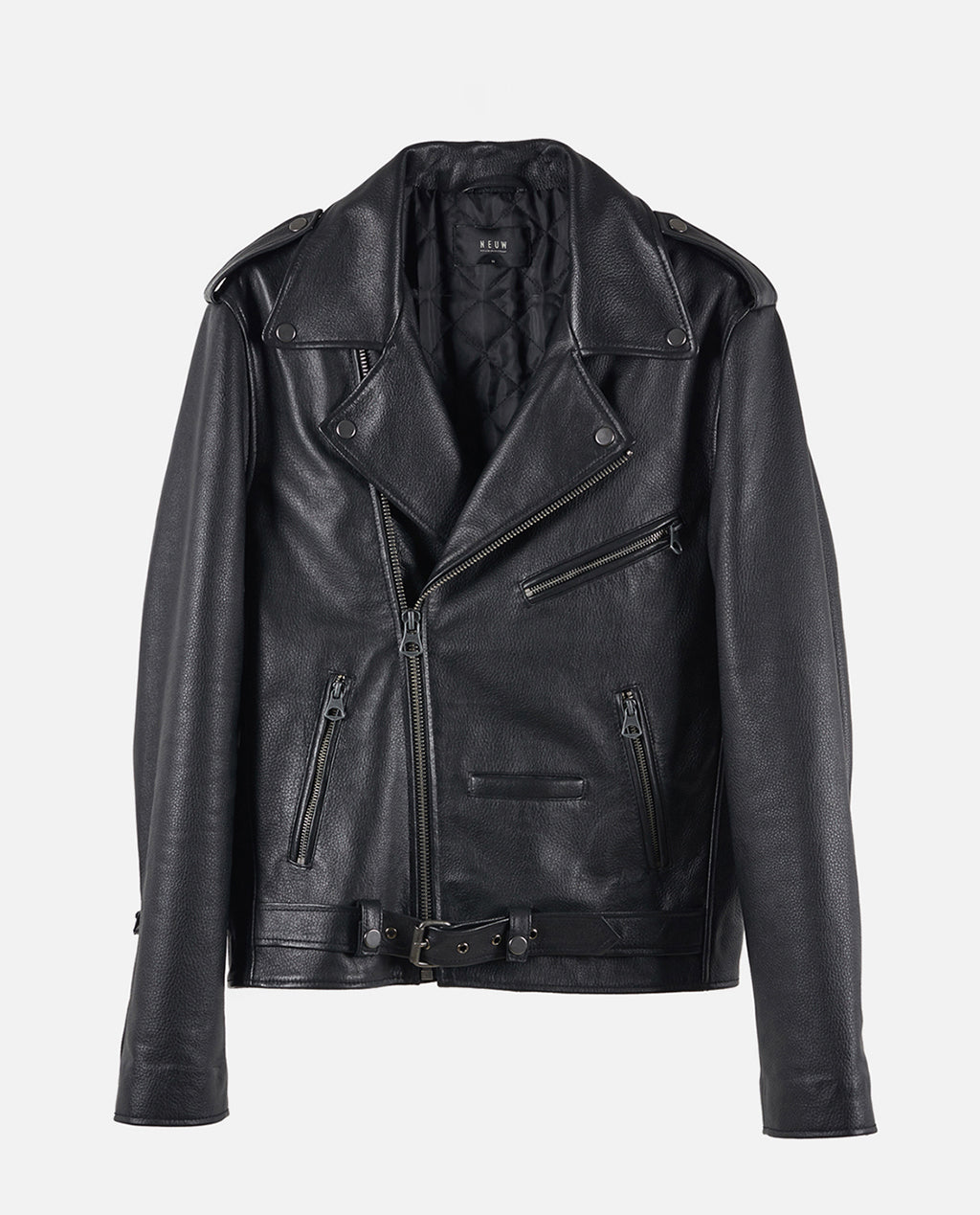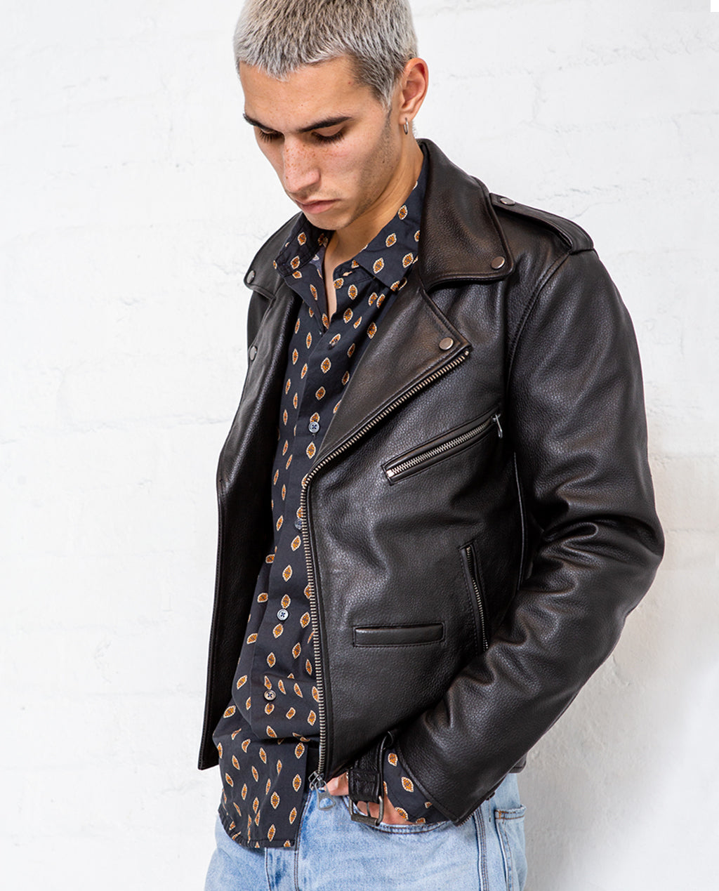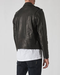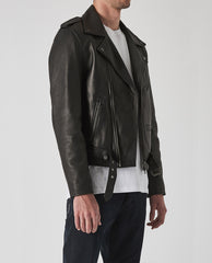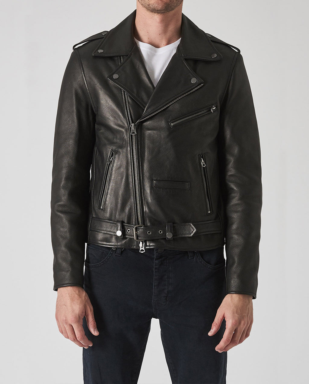 Neuw Fitzroy Leather Jacket is made with the finest workmanship and is crafted from smooth Arabian lamb leather in a black colour way. This jacket features a comfortable, fitted silhouette, multiple zip pockets and a buckle fastening belt.