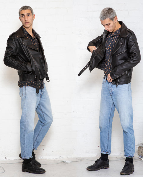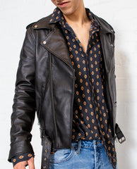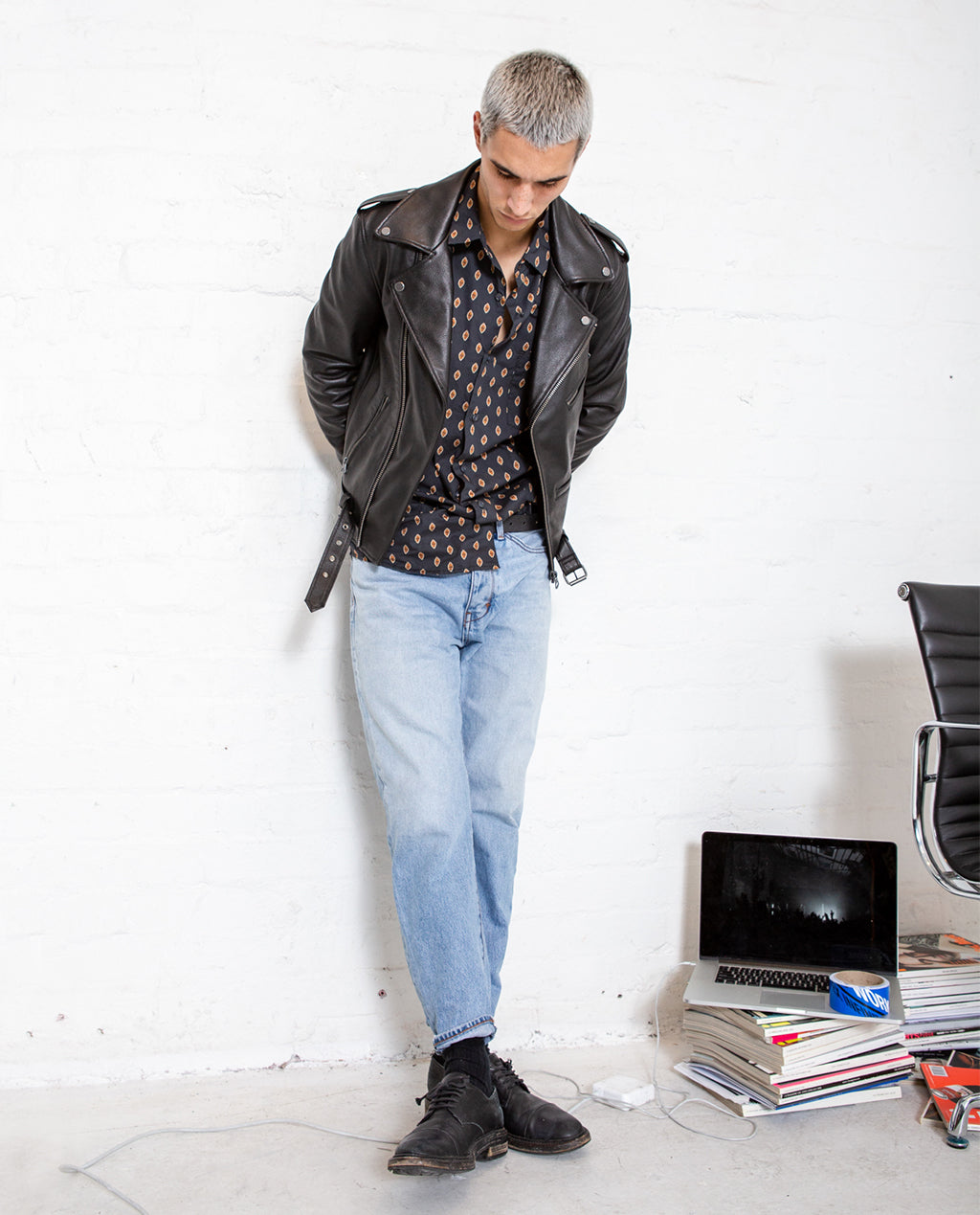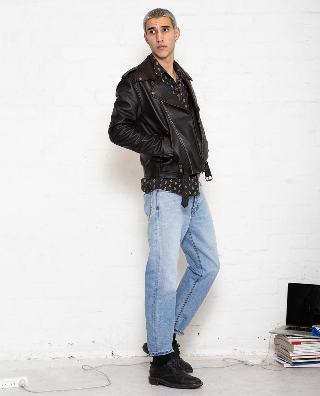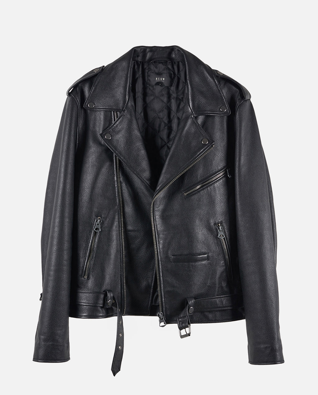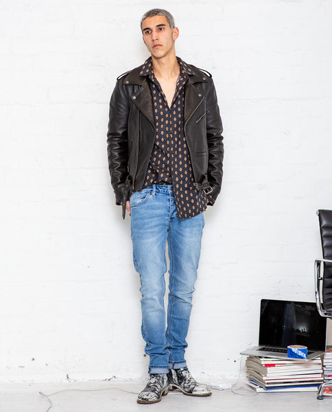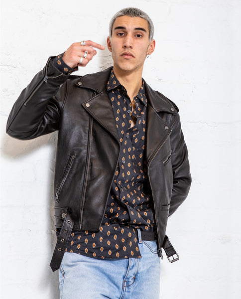 Neuw Fitzroy Leather Jacket is made with the finest workmanship and is crafted from smooth Arabian lamb leather in a black colour way. This jacket features a comfortable, fitted silhouette, multiple zip pockets and a buckle fastening belt.