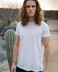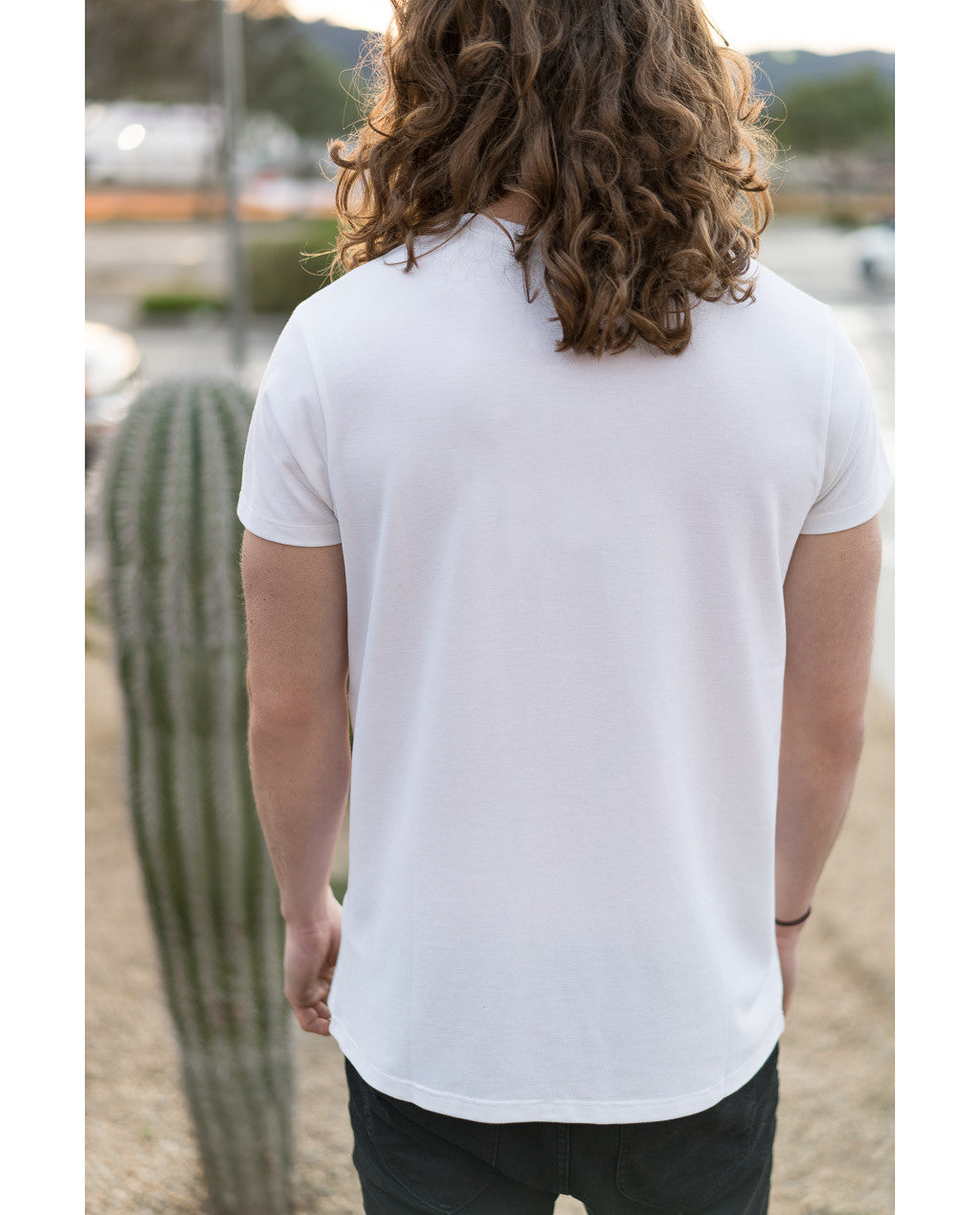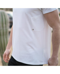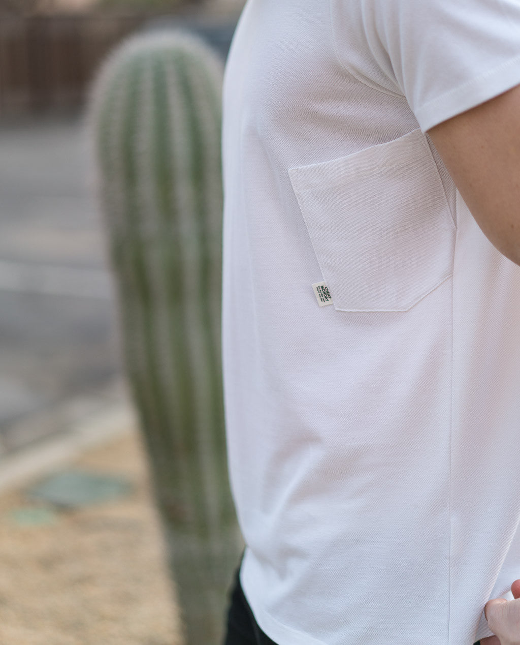 Tight-fit tee in soft pique fabric wth round neck, cap sleeves and pocket detail at side.