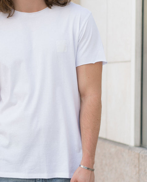Ultra-soft Cheap Monday t-shirt featuring raw edges at the neck + cuffs. Cut in a standard fit with bite-stitch detailing at the hem and finished with a woven logo label at the chest. Launched in 2004, contemporary Stockholm-based brand Cheap Monday has become renowned for its iconic skinny jeans and grinning skull logo.
