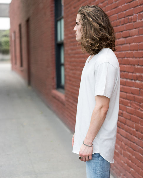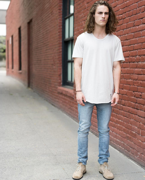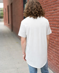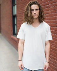 Cheap Monday t-shirt cut extra-long with a raw edge rounded hem. Finished with rib-knit banding at the neck. Launched in 2004, contemporary Stockholm-based brand Cheap Monday has become renowned for its iconic skinny jeans and grinning skull logo.