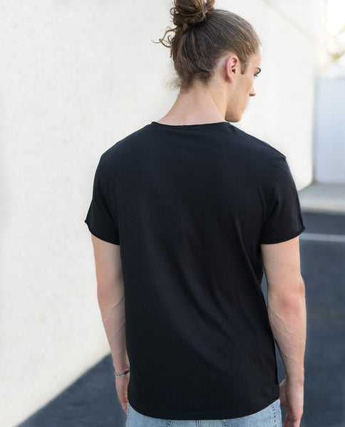 Ultra-soft Cheap Monday t-shirt featuring raw edges at the neck + cuffs. Cut in a standard fit with bite-stitch detailing at the hem and finished with a woven logo label at the chest. Launched in 2004, contemporary Stockholm-based brand Cheap Monday has become renowned for its iconic skinny jeans and grinning skull logo.