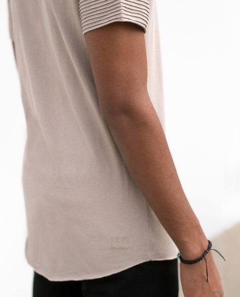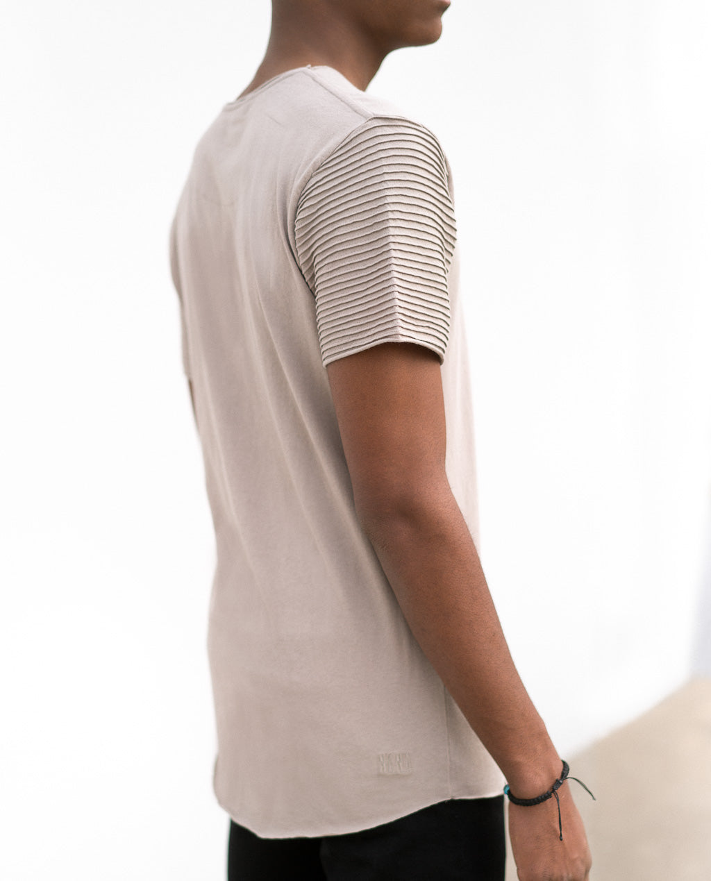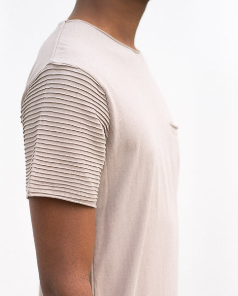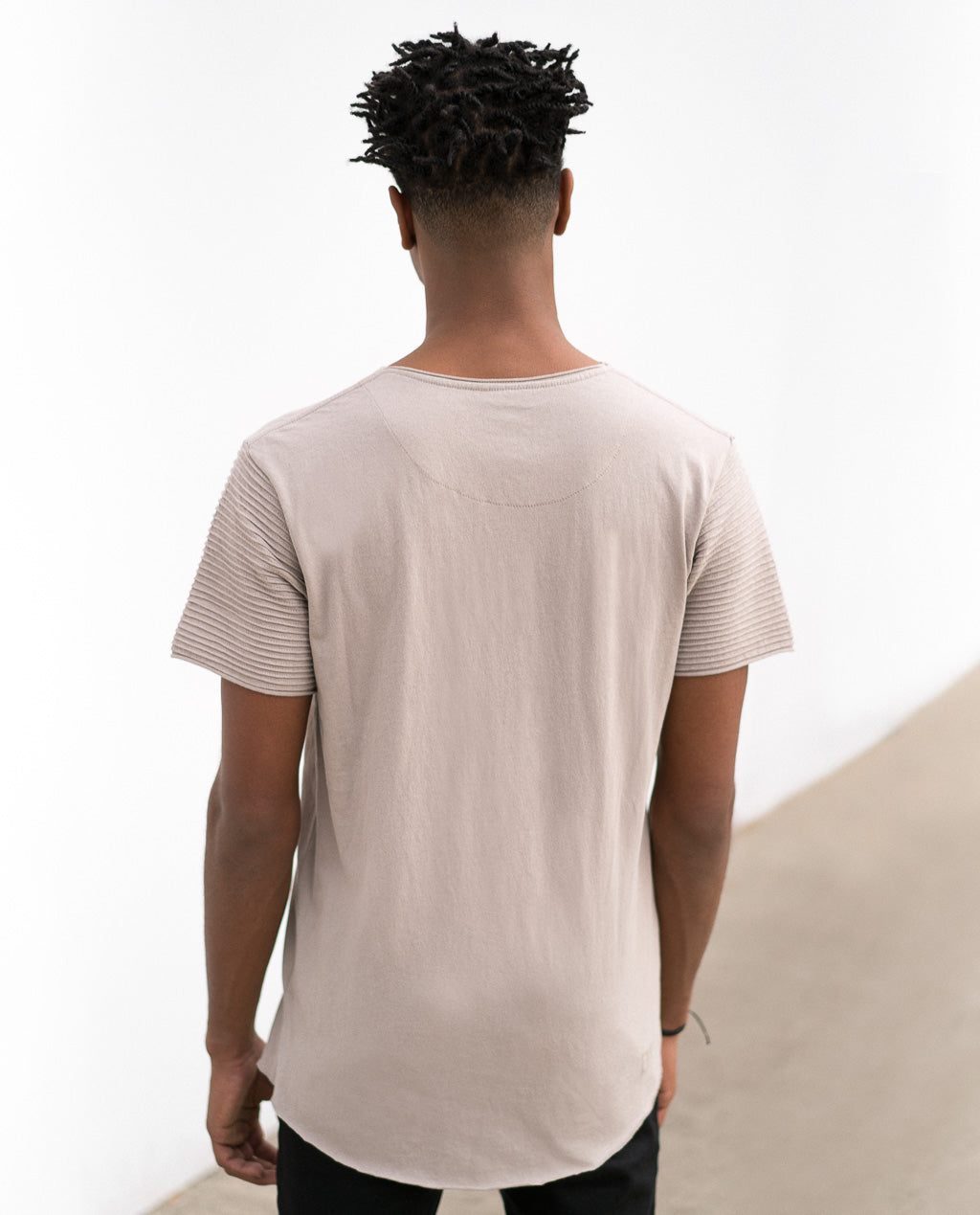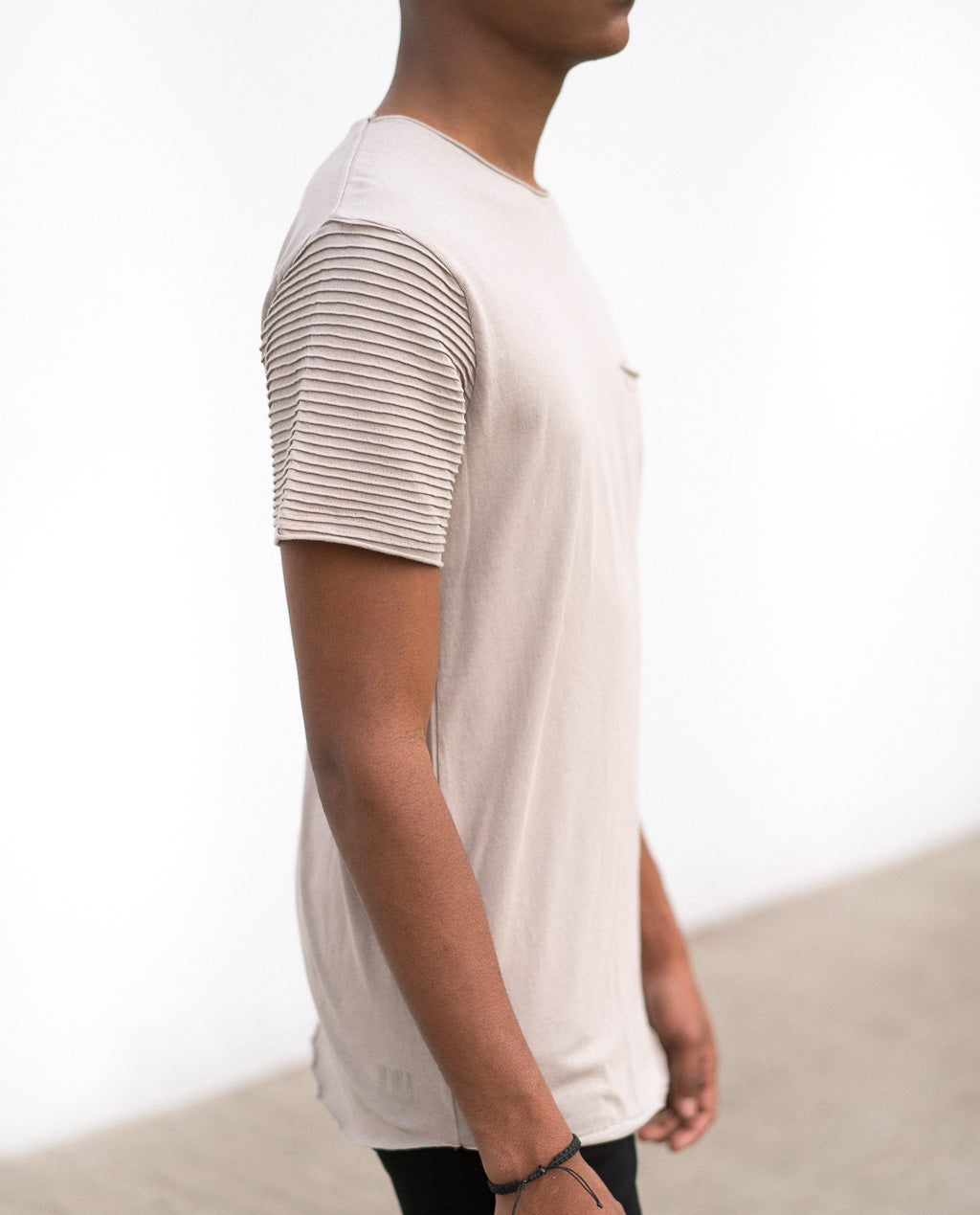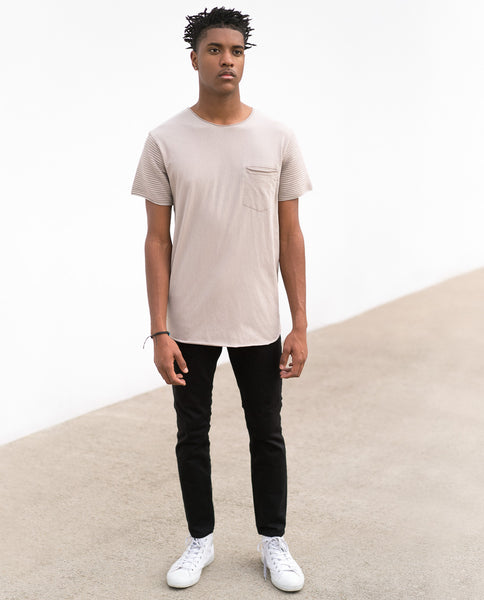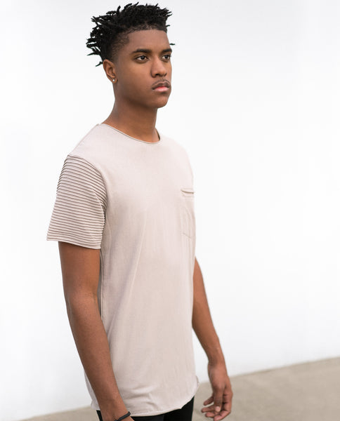 This Moto vibe t-shirt from Nana Judy featuring pleated detailing at the sleeves + right side hem. Ultra-soft cotton is cut long with a patch pocket at the chest, complete with raw edge detailing at the neck + sleeves.