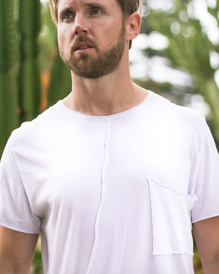 The nANA jUDY Mono Relax Crew White tee shows design flair beyond the average white tee. The raw seams and pocket detailing sets it apart from all the rest.