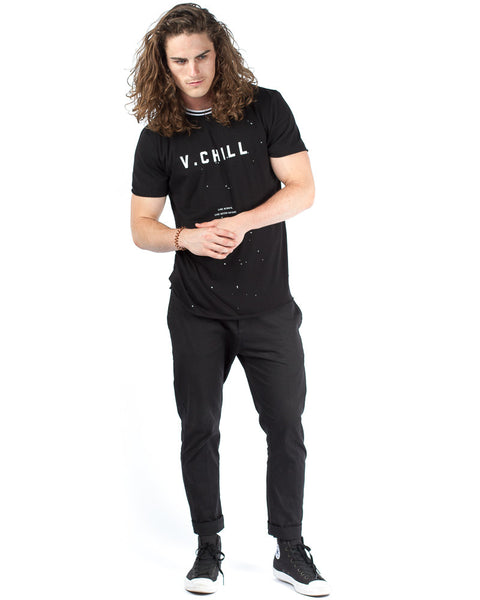 The nANA jUDY V.Chill Text Print Tee has a varsity-inspired look thanks to its striped crew neckline and text print on the chest. The relaxed tee is finished with raw-edge trims and white splatter motifs and is part of nANA JUDY'S Inertia Collection.