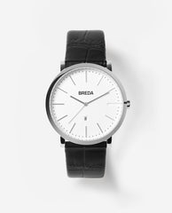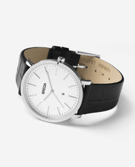 The embossed croc band made with genuine leather meets a stainless steel sandwich case to create a timeless look for our first ever dress watch. We included features such as a unique crown detail and simplistic date window while being mindful of Marcel Breuer and his meticulous approach to modern design.