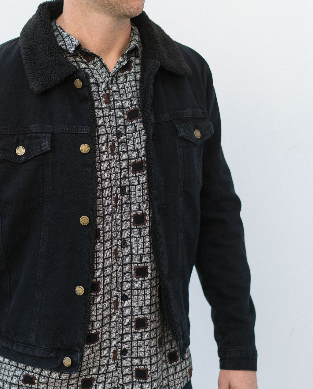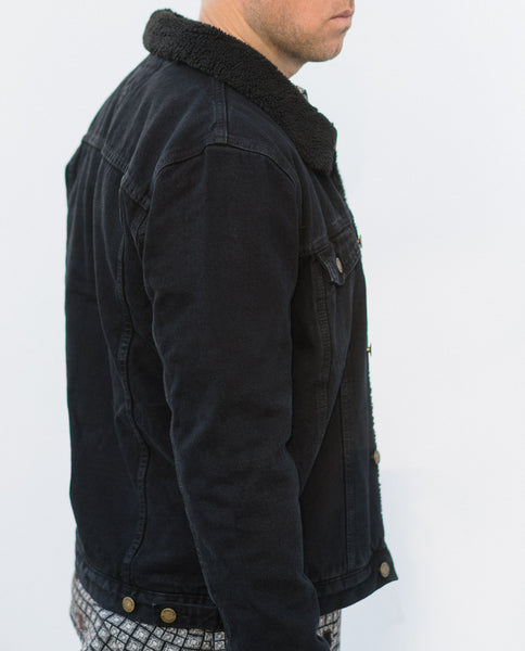 Rolla's was created by designer couple Andy Paltos and Sarah Gilsenan after spending a decade working for iconic global denim brands. The label embodies the laid-back personality, sexuality and love for jeans of the place where it was born ? Australia. Drawing inspiration from 1980?s photographers, skateboarders and pub rock bands, Rolla?s pares it down and focuses on the classic details and clean lines. It's all about the look, the fit and keeping it simple.Rollas Jet Black Denim Sherpa Jacket